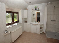 1 Wohn-/Schlafraum mit Sitzecke (Schlafcouch) und Sat/TV, Radio/CD. Integrierte Küchenzeile (Geschirrspüler, Ceran-Herd, Backofen, Kühlschrank, Mikrowelle, Kaffeemaschine, Toaster, Wasserkocher) mit Eßtisch. 1 Schlafraum (Doppelbett 2.00 m breit. 1 Reisebett stellbar). 1 Schlafraum (2 Einzelliegen je 1.00 m breit. 1 Babybett stellbar). Großes Bad mit Du/WC.